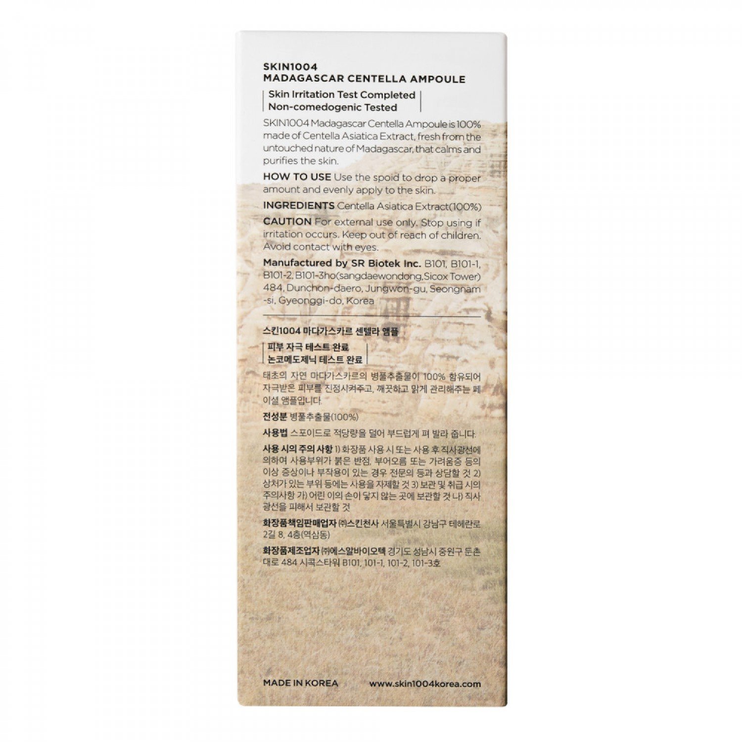 SKIN1004 - Madagascar Centella Ampoule - ampulka s obsahom 100% extraktu z pupočníka ázijského nazbieraného v súlade s prírodou na Madagaskare. Extrakt je zdrojom aziatikozidu, madecassosidu, kyseliny aziatickej, flavonoidov a cukrov. Pupočník ázijský upokojuje, má protizápalové účinky, regeneruje, urýchľuje proces hojenia, zlepšuje pružnosť krvných ciev a stimuluje mikrocirkuláciu. Ampulka upokojuje, posilňuje a je vhodná pre všetky typy pleti.