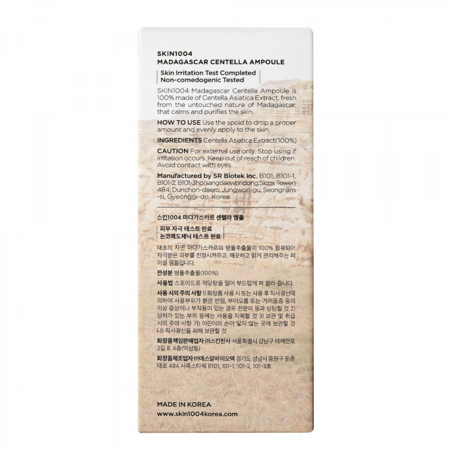 Krajina pôvodu: Južná Kórea ZLOŽENIE Centella Asiatica Extract (100%)