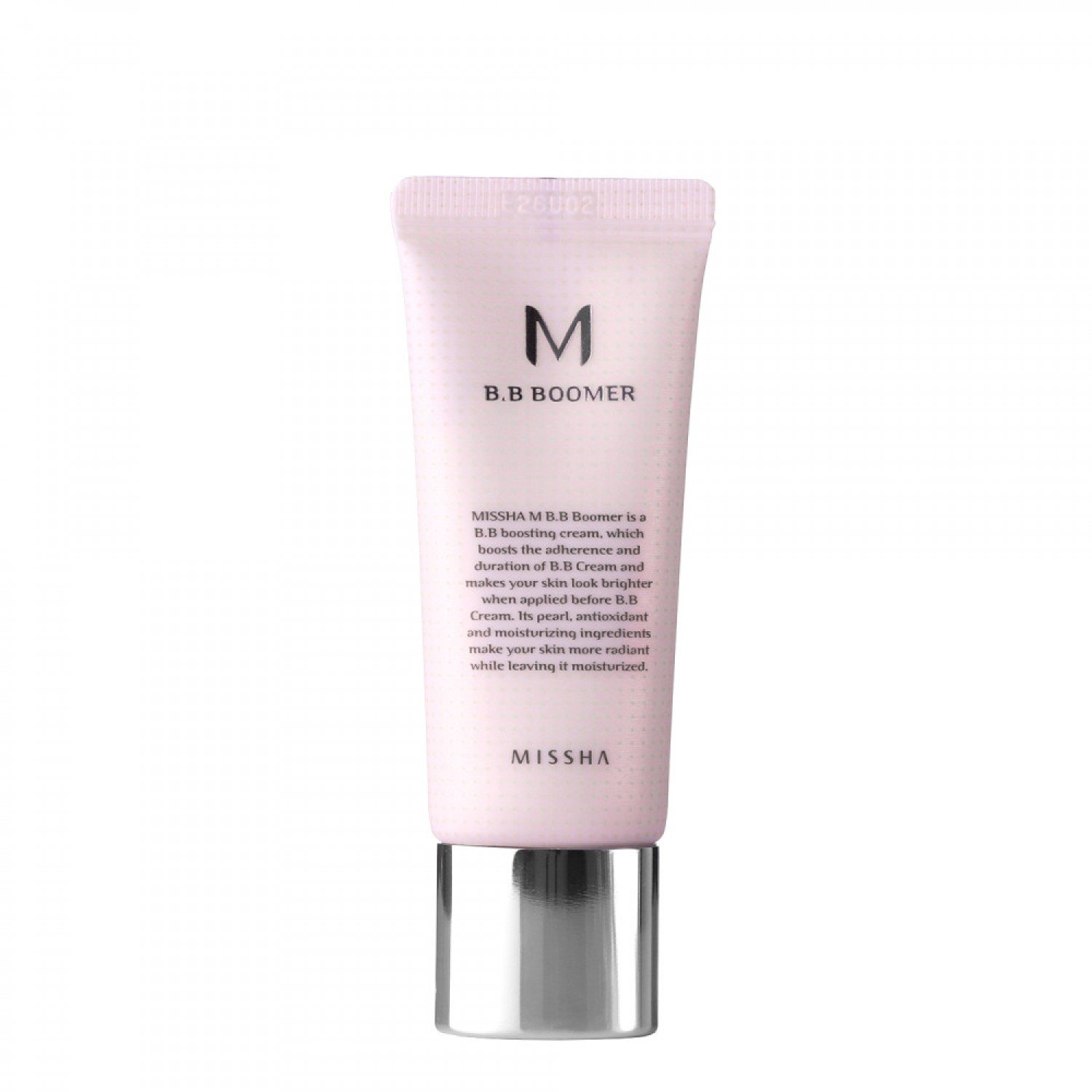 Missha - M BB Boomer - rozjasňujúca báza pod BB krémy, ktorá predlžuje výdrž produktu. Má perleťový finish, má ľahké zloženie, hydratuje a vyhladzuje. Obsahuje skvalán, ktorý hydratuje, adenozín, ktorý pôsobí proti vráskam, zlepšuje elasticitu pleti a rozjasňuje a niacínamid, ktorý posilňuje ochrannú bariéru pokožky a má seba-regulačné a antioxidačné účinky. Prípravok bol obohatený o perleťový prášok, ktorý dodáva pleti lesk.