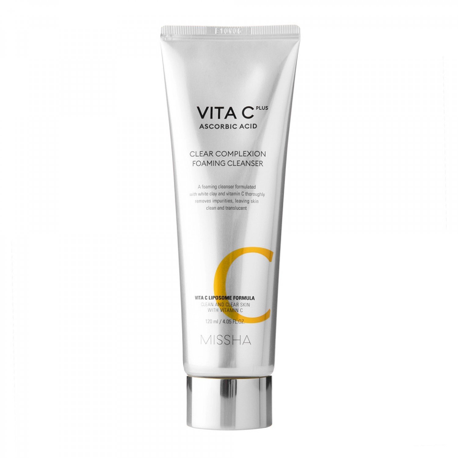 Missha - Vita C Plus Clear Complexion Foaming Cleanser - čistiaca pena pre nejednotnú a sivú pleť bez lesku. Obsahuje niekoľko druhov vitamínu C, ktoré navracia pleti jej lesk, majú antioxidačné účinky a rozjasňujú, ceramidy, ktoré spolu s kyselinou hyalurónovou hydratujú a regenerujú, arbutín a kyselinu tranexamovú, ktoré zosvetľujú pigmentové škvrny a niacínamid, ktorý posilňuje ochrannú bariéru pokožky.