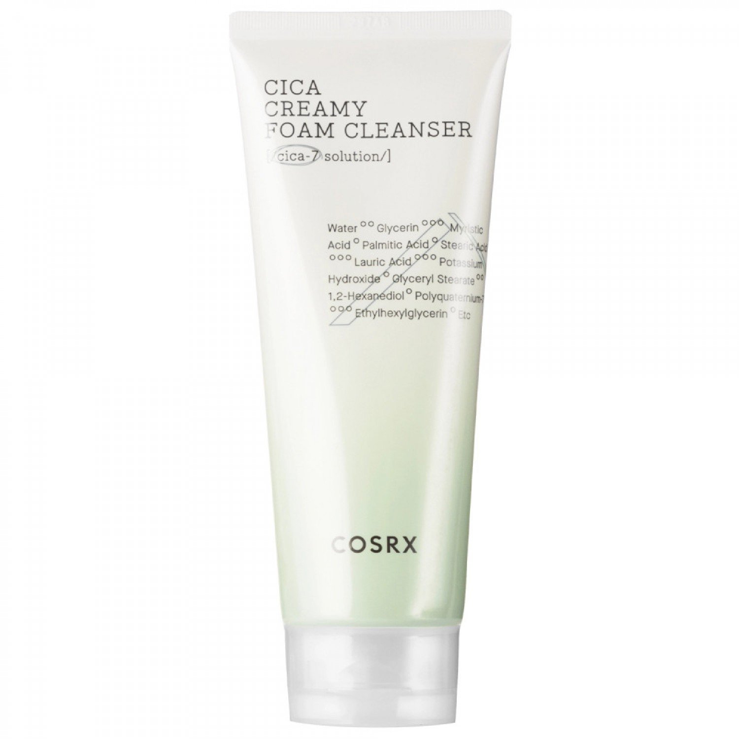 Cosrx - Pure Fit Cica Creamy Foam Cleanser - krémová čistiaca pena pre citlivú a problematickú pleť. Obsahuje esenciálny olej z eukalyptu, ktorý má antibakteriálne a protizápalové vlastnosti, esenciálny olej z klementínky, ktorý osviežuje, tonizuje a upokojuje zápalové prejavy a moringový olej, ktorý má regeneračné a protizápalové účinky. Prípravok bol ďalej obohatený o extrakt z pupočníka ázijského a zložky z neho izolované: kyselinu aziatickú, kyselinu madaziatovú, aziatikozid a madecassoside, ktoré intenzívne upokojujú, regenerujú a čistia.