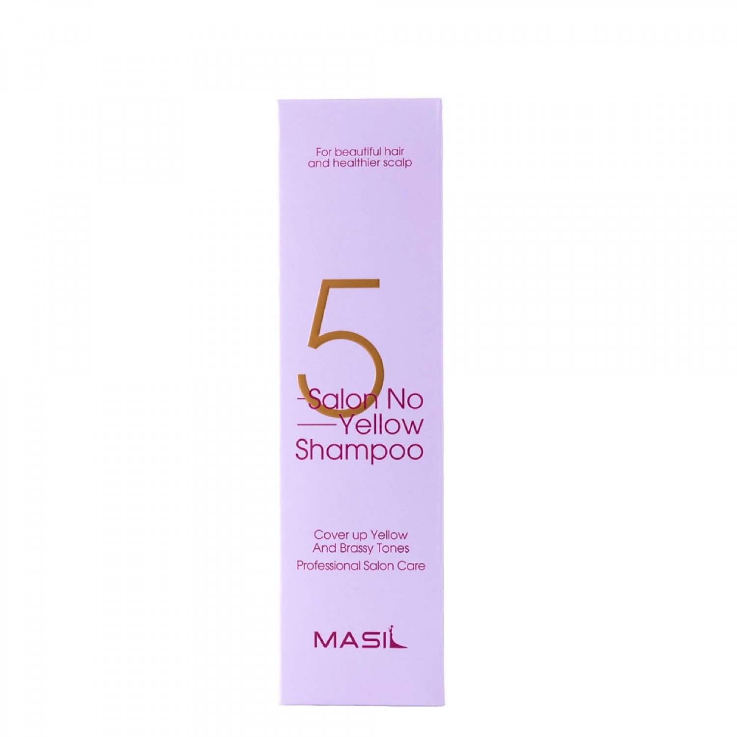 Masil - 5 Salon No Yellow Shampoo - tónovací šampón pre farbené vlasy. Predlžuje výdrž farby, ochladzuje odtieň a redukuje žlté tóny a navyše vyhladzuje vlasy, dodáva im lesk a uľahčuje ich styling. Obsahuje extrakt z materskej kašičky, ktorý posilňuje a vyživuje vlasové cibuľky, extrakt z vínnej révy, ktorý má antioxidačné účinky a hydratuje, extrakt z avokáda, ktorý na povrchu vlasov vytvára jemný film a chráni pred škodlivými účinkami vonkajších vplyvov, extrakt z cukrovej trstiny, ktorý vyhladzuje a ferment z baktérií Lactobacillus, ktorý sa stará o kožný mikrobióm. Šampón osviežuje vlasy, zanecháva ich mäkké na vlasy a ochladzuje farbu vlasov. Má gélovú konzistenciu a fialové pigmenty; nezanecháva škvrny. Bez obsahu silikónov a síranov. Produkt má ľahko kyslé pH: okolo 5-6.