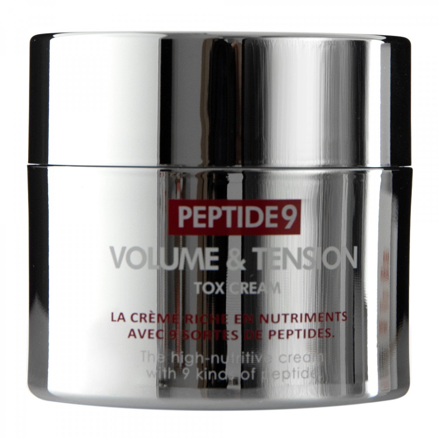 Medi-Peel - Peptide 9 Volume and Tension Tox Cream - revitalizačný krém na tvár, ktorý hydratuje a pôsobí proti starnutiu. Je vhodný pre zrelú pleť so stratou pružnosti a problémami s vráskami. Obsahuje komplex 9 peptidov, ktoré vypínajú pleť a pôsobia proti vráskam, extrakt z materskej kašičky a zlato, ktoré regenerujú a podporujú regeneračné procesy, kyselinu hyalurónovú, ktorá intenzívne hydratuje a kolagén, ktorý vyhladzuje. Krém poskytuje efekt vypnutej a vyživenej pleti.