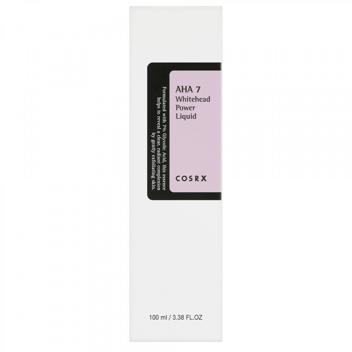 COSRX - AHA 7 Whitehead Power Liquid - prípravok na pleť určený proti "čiernym bodkám" s prírodnými kyselinami AHA v podobe jablčnej vody a kyseliny glykolovej. Prípravok má exfoliačné a čistiace účinky, redukuje čierne bodky a reguluje tvorbu kožného mazu. Obzvlášť účinný je v prípade upchatých pórov, ktoré dôkladne čistí a odstraňuje odumreté kožné bunky. Obsahuje niacínamid, ktorý rozjasňuje pleť a zvyšuje jej odolnosť voči vonkajším faktorom. Po aplikácii zanecháva pokožku hladkú a znižuje viditeľnosť jemných vrások. Kyselina hyalurónová poskytuje optimálnu úroveň hydratácie, vďaka ktorej nie je pokožka po aplikácii vysušená. Prípravok podporuje proces obnovy buniek, regeneruje a urýchľuje hojenie. Je vhodný pre mastnú a problematickú pleť.