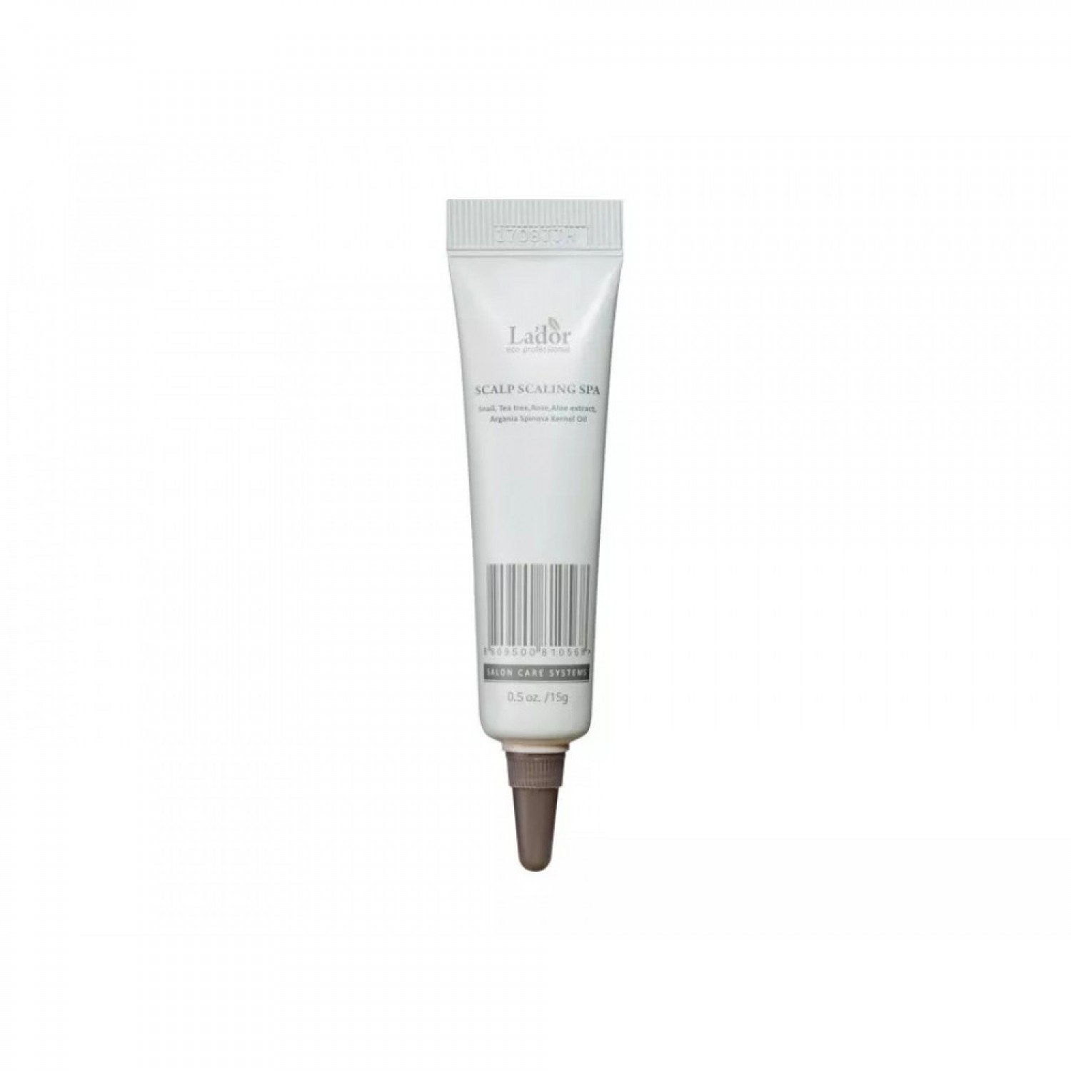 La'dor - Scalp Scaling Spa Ampoule - revitalizačný peeling pre pokožku hlavy s ľahkou konzistenciou. Obsahuje čajovníkový olej (tea-tree) a extrakt z listov zeleného čaju, ktoré účinne odstraňujú prebytočný maz a nečistoty z pokožky hlavy a minimalizujú podráždenie a zápalové príznaky, filtrát slimačieho slizu a araganový olej, ktoré hydratujú pokožku hlavy a zanechávajú vlasy jemné a hladké na dotyk, a mentol, ktorý príjemne chladí a zanecháva vlasy svieže. Mentol dodáva výrobku charakteristickú mätovú vôňu.